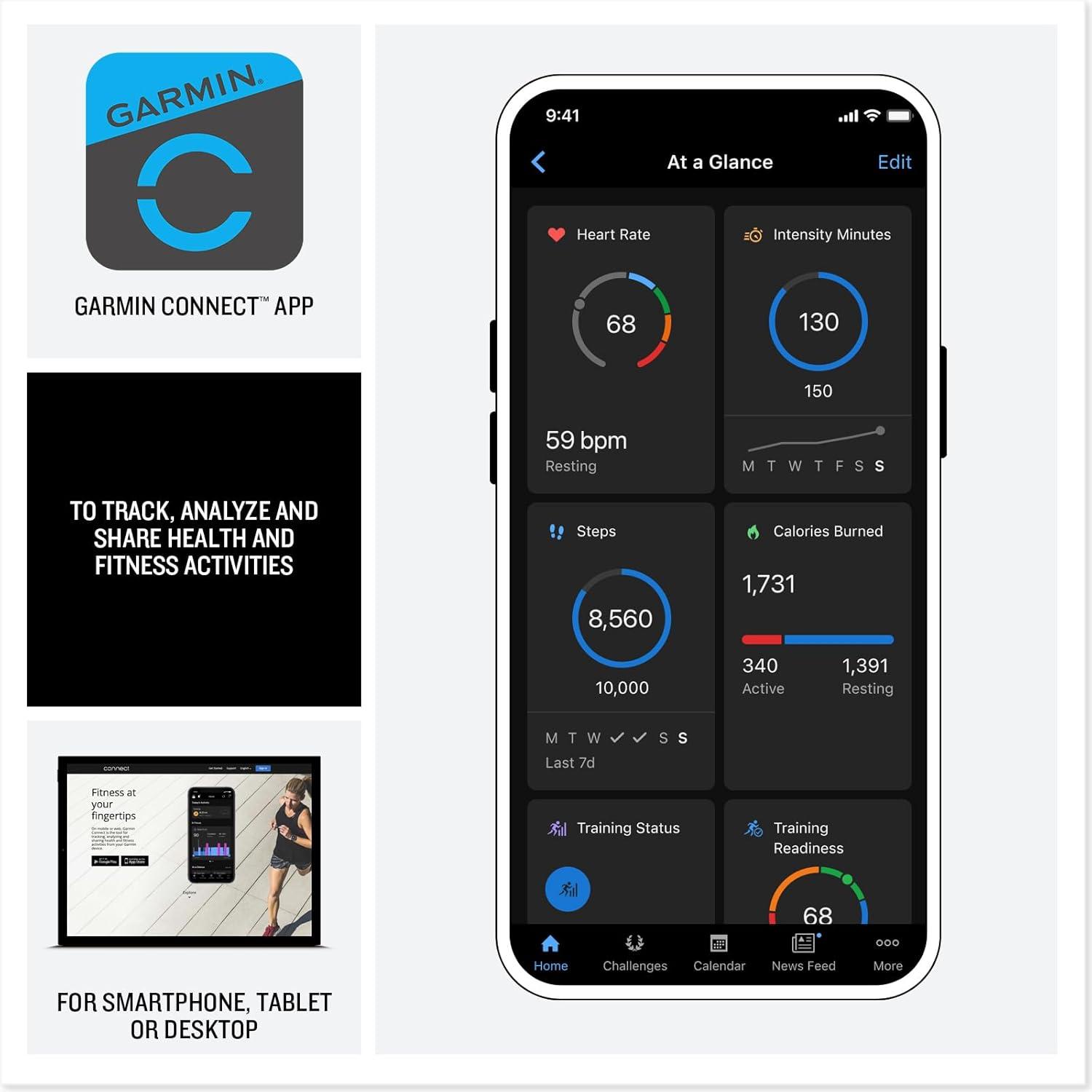 LTE network connectivity lets you leave your phone behind; use your watch to exchange messages and make voice calls — plus let friends follow along with LiveTrack location sharing (30-second update rate) and location check-ins with the on-device Garmin Messenger app (active subscription required; coverage limitations may apply)